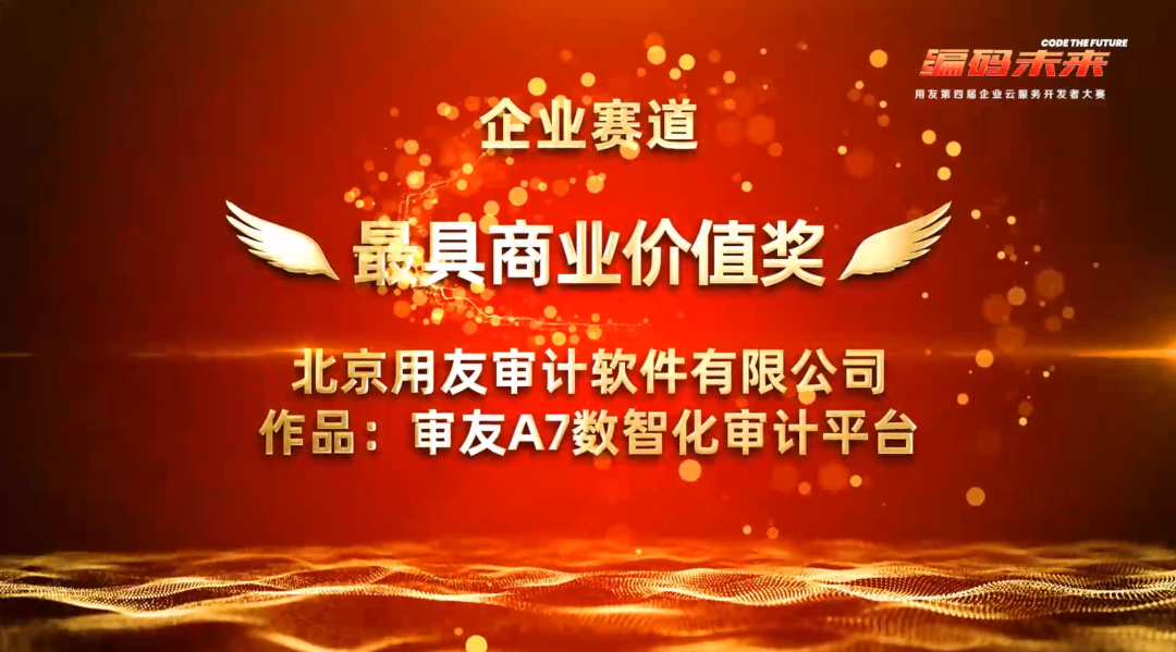 編碼未來—用友第四屆企業云服務開發者大賽作為一年一度的開發者盛事,面向企業服務領域開發者,立足企業實際業務需求,基于用友 BIP、用友低代碼開發平臺YonBuilder,推動面向企業服務領域的SaaS快速開發與創新成果轉化,共計399支參賽團隊參與了本次大賽。12月9日,決賽結果震撼公布,我司提交的參賽作品“審友A7數智化審計平臺”榮獲企業賽道—最具商業價值獎。