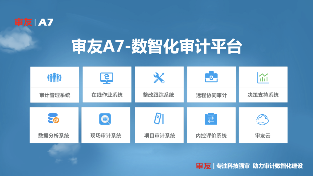 “審友A7”產(chǎn)品已進入成熟穩(wěn)定期,可以快速、優(yōu)質(zhì)、規(guī)?;桓叮糜褜徲嬕餐瓿闪巳珖鴮嵤┙桓丁⒎罩С煮w系建設,這些工作為審計信息化的普及奠定了堅實的基礎!